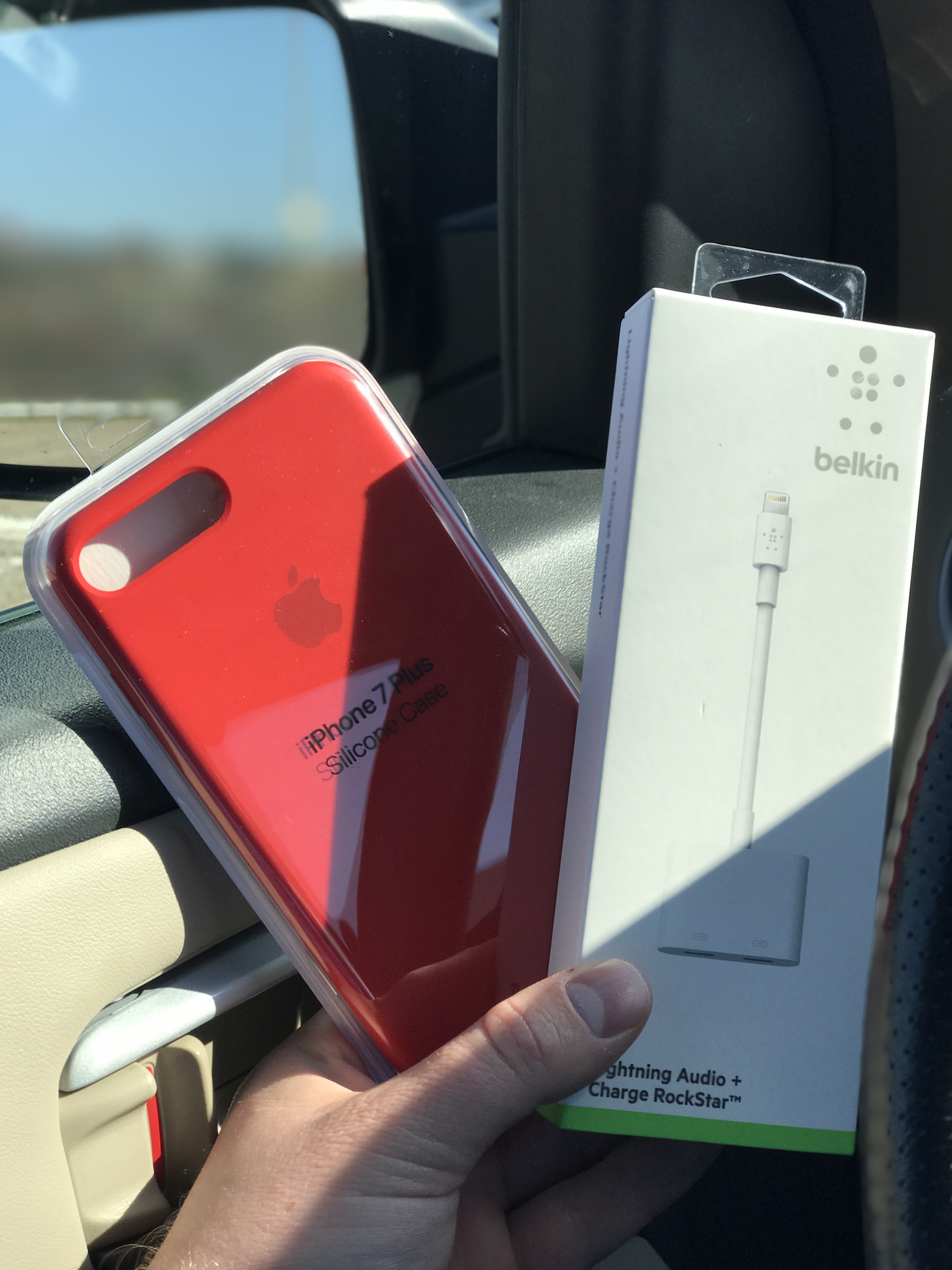 As most of us know, Apple ditched the headphone jack. Now Apple includes lightning EarPods in the box and also a lightning to headphone jack adapter. They give you everything you need to listen to your music whether its with Apple’s own EarPods or your old 3.5mm wired headphones. I did pick up the Belkin Lightning Audio + Charge Rockstar so I was able to charge my phone while listening to music in the car.
