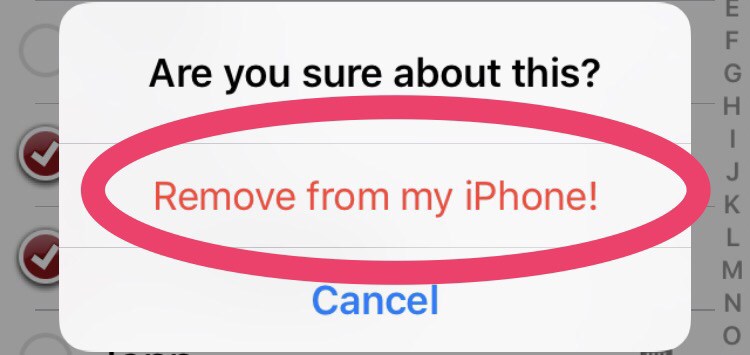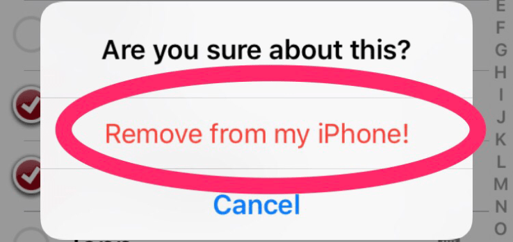 Click “Delete Contacts” and you will see a dialog box asking if you are sure about this. Click on, in red, “Remove from my iPhone!”