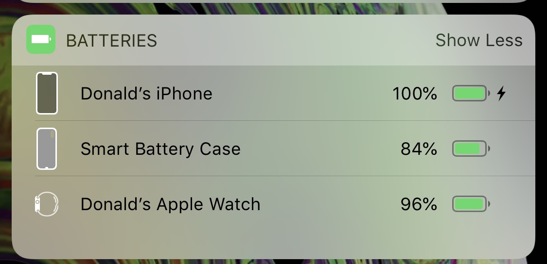 - It is integrated great with iOS. When you put the case on the charger it tells you the charge of the case and your phone. Also, you can get those charge percentages when you swipe over to your widget screen.